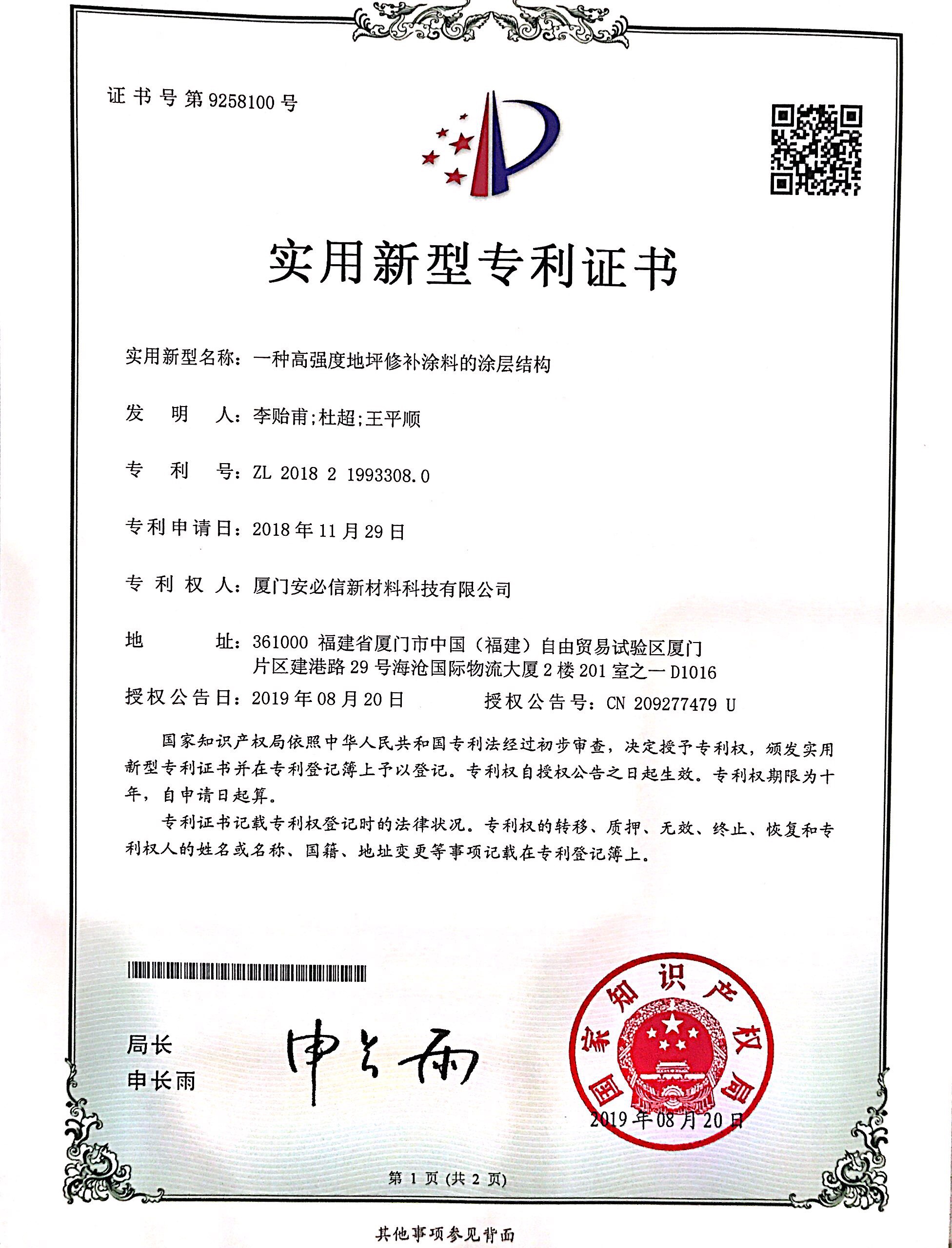 廈門安必信新材料科技有限公司水性聚氨酯地坪漆/透水高分子保護(hù)劑